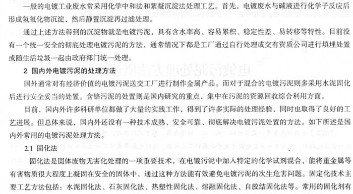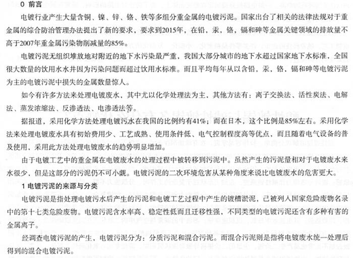 摘要——電鍍污泥含有一定量的銅、鎳、鉻、鋅等金屬,屬于危險廢物。對其中的金屬(尤其是重金屬)進行資源化利用,能有效地消除電鍍污泥重金屬的二次污染,同時也能帶來可觀的經濟和環境效益。本文介紹了電鍍污泥的來源與分類,重點介紹了電鍍污泥的國內外處理方法,為今后的研究提供一些思路,最大限度的減少重金屬污染。